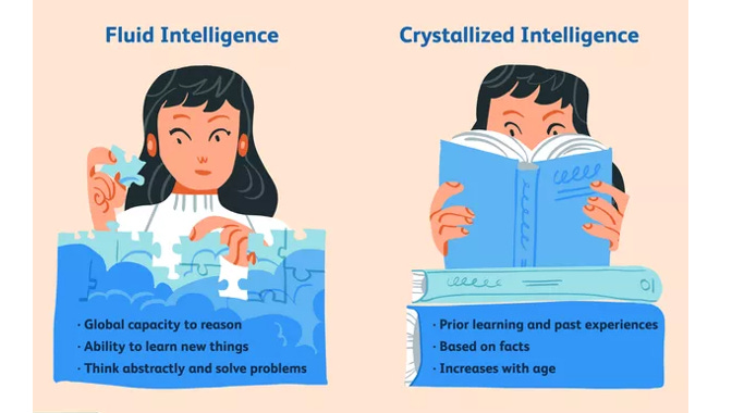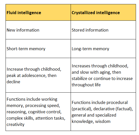 A short comparison between fluid intelligence and crystallized intelligence as below.